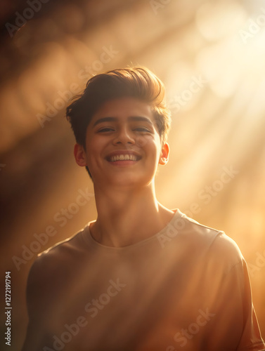 Emotions Freedom - Radiant Young Man's Genuine Smile Captures Hope And Joy In Golden Sunlit Portrait.