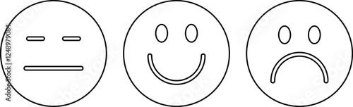 Emotions icons set. Faces or happy, neutral and sad emoji in circle shape. In linear. Vector illustration. EPS 10