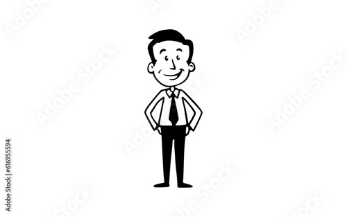 Employe with smile doodle line art illustration with black and white style for template.