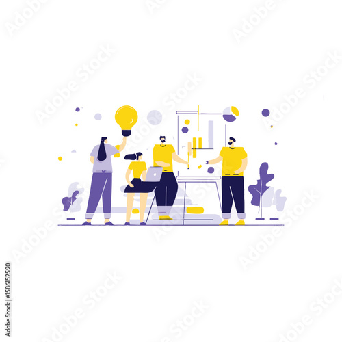 Employee Impact Illustration - Modern Flat Design in Neon Yellow & Purple