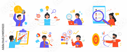 Employee performance set. Collection of images with colleagues. Successful firm concept, selection of candidates, talents, business. Cartoon flat vector illustration isolated on white background