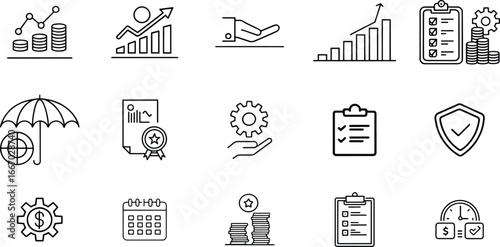 Employee Stock Ownership Plan Icons Set – Line Style Business, Shares and Benefits Vector