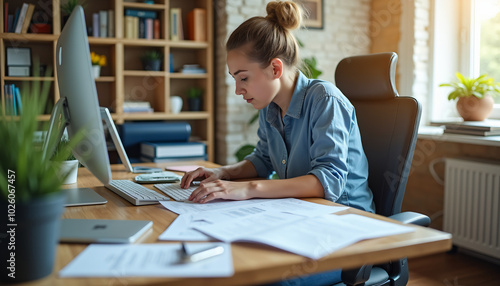 Employee Working on Laptop at Desk
