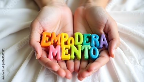 Empoderamento word in Portuguese made with colorful letters representing empowerment and support in neurodiversity