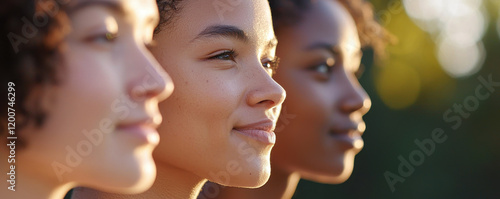 Empowered women showcasing diversity and unity in serene setting