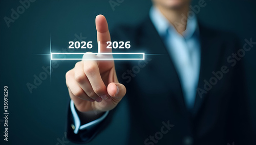 Empowering Businesswomen: Pressing the Digital Loading Bar for Strategic Planning and Future Readiness in 2026 - Stock Photo Concept with Space for Customization