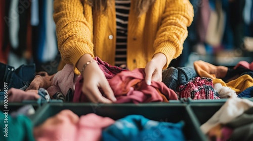 Empowering Change: Young Woman Volunteering in a Charity Clothing Store