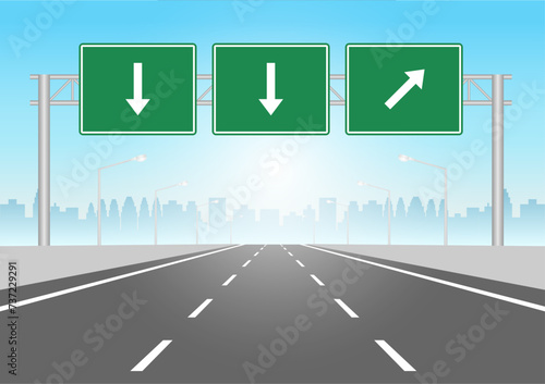 Empty Asphalt Highway Road with Traffic Sign. Vector Illustration.