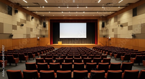 Empty Auditorium with Stage and Seats Ready for an Event