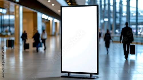 Empty billboard in a busy airport terminal, ideal for advertising.