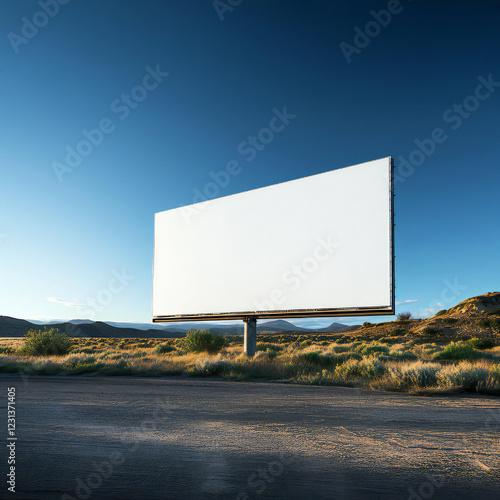 Empty Billboard Mockup in a Desolate Desert Landscape with Road and Mountains in the Distance