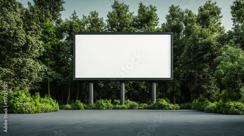 Empty Billboard Surrounded by Lush Green Trees in a Tranquil Park Setting Inviting Creativity and Imagination for Future Advertisements and Messages