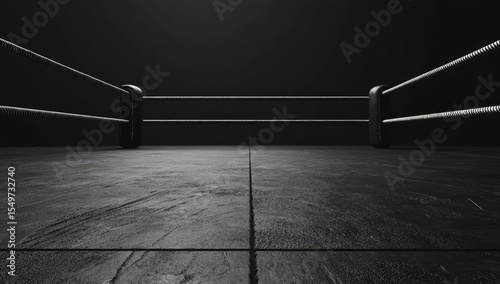 Empty boxing ring, dark studio