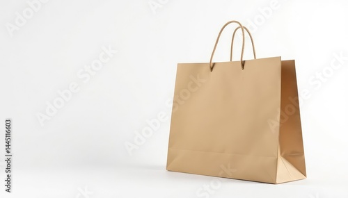 Empty brown paper shopping bag, isolated on white background, mockup, studio shot, store