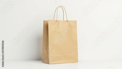 Empty brown paper shopping bag on white background, product photography, clean