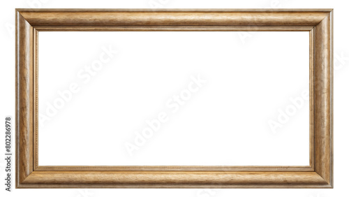 Empty brown wooden picture frame isolated on white background for displaying artwork or photographs
