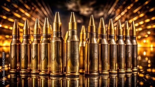 Empty Cartridge Cases and Shiny Brass Cartridges Illustrating Armed Conflict, War, Shooting Events, Firearms, Ammunition, Military Equipment, Low Light Photography, and More