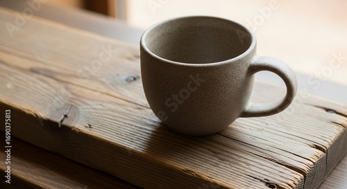 Empty Ceramic Coffee Mug on Rustic Wooden Table Cozy Morning Still Life Photography
