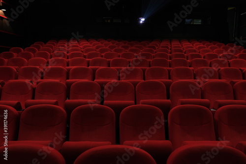 Empty cinema hall with red seats. Movie theatre