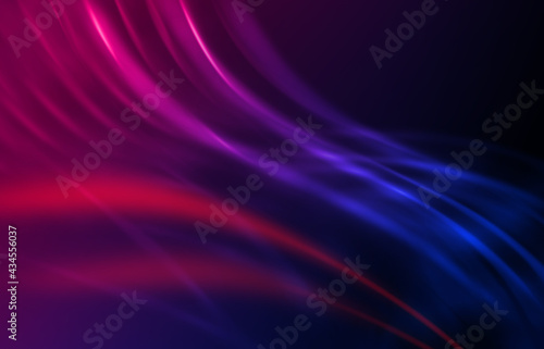 Empty dark abstract background with ultraviolet geometric lines. Neon glow.