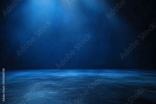 Empty Dark Blue Studio and Grey Floor Concrete.