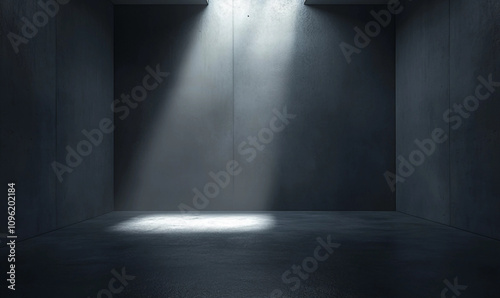 Empty Dark Room With Futuristic Interior And Minimalistic Light Design.
