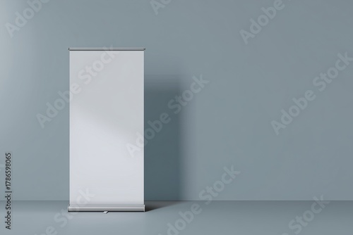 Empty Display Stand in a Minimalist Room with Soft Lighting and a Calm Atmosphere, Perfect for Presentations and Promotions