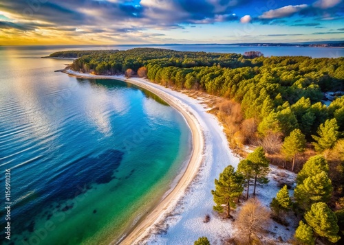 Empty Dog Beach, Kasteja Forest Park, Medulin, Istria, Croatia - Winter Drone Shot