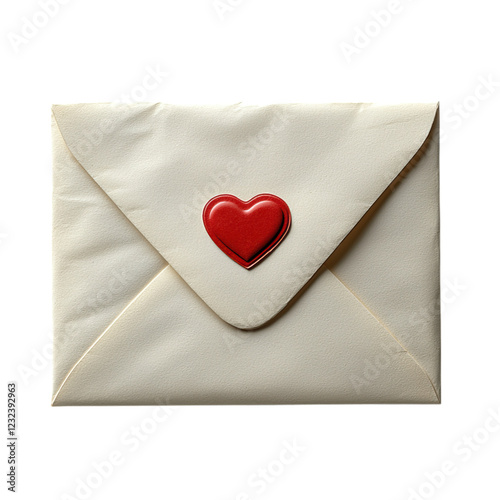 Empty envelope with a small red heart sticker sealing the flap