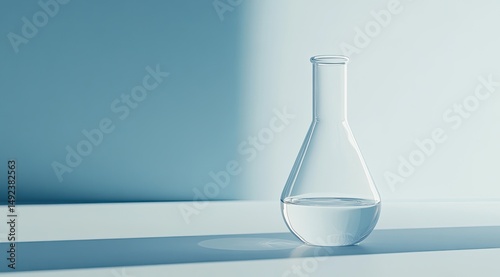 Empty flask on a light blue surface