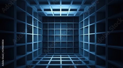 Empty, futuristic, gridded room, architectural design, virtual space