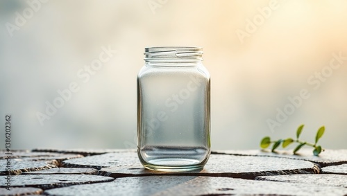 Empty Glass Jar on Stone Countertop, Morning Mist, Product Display