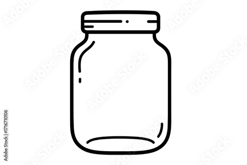 Empty glass mason jar line art. Vector icon for canning, homemade food, and preserves. Kitchen storage container concept. Simple outline doodle for jam, jelly, and pickles.