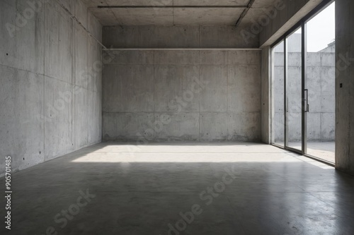 Empty gray Cement Wall room interior Background and Rough floor concrete Space light and line Shadow perspective