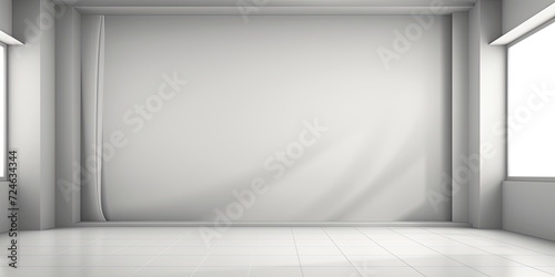 Empty gray studio room with abstract white background and blurred backdrop for product presentation, featuring window shadows.