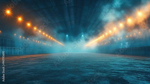 Empty Industrial Building With Fog And Lights