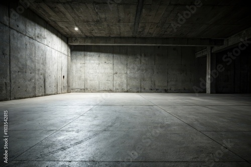Empty Industrial Concrete Room with Minimal Lighting and Smooth Floor