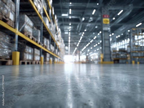 Empty Industrial Warehouse with Shelves and Concrete Floor – Mockup Background for Product Presentation