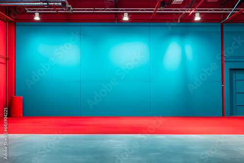 Empty interior of a modern industrial hall in a dynamic contrast of colors