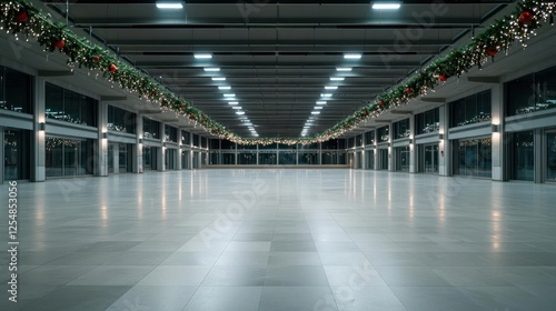 Empty Modern Commercial Hall Decorated For Holiday Season