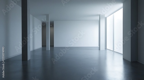Empty modern minimalist room with large windows
