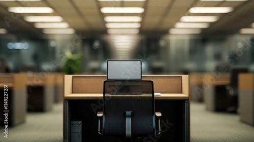 Empty Office Workstation at Night