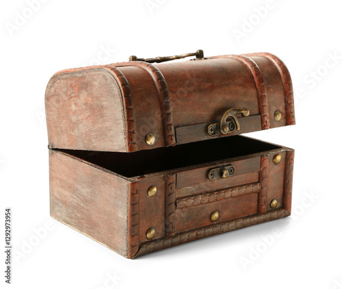 Empty old wooden chest isolated on white background