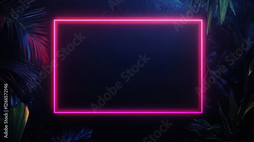 Empty picture frame with glowing neon edges in dark setting