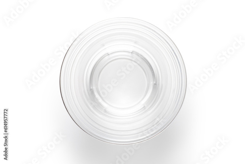 Empty plastic coffee cup isolated on white background. Clear plastic cup mockup for coffee, milkshake or juice. Top view.