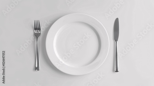 Empty plate, fork, knife, clipping path, cutlery isolated on white background