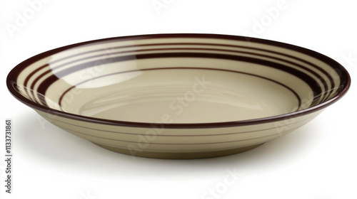 Empty plate with brown stripes on white background, showcasing its elegant design and smooth surface, perfect for serving various dishes