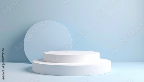 Empty podium in elegant on white and pastel blue gradient background ideal mockup for design