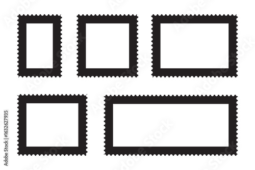 Empty postage stamp borders set vector illustration. Post stamps collection.