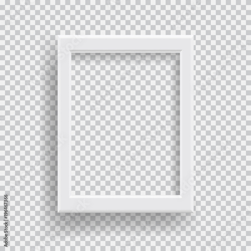 Empty realistic photo frame with transparent shadow on plaid black white background